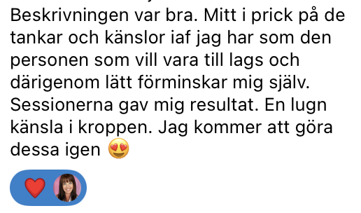 "Det här var bland det mest kraftfulla jag har testat, och då har jag ändå gjort en del inre arbete genom åren. Det som berörde mig mest var att Lenas ord var så spot-on.